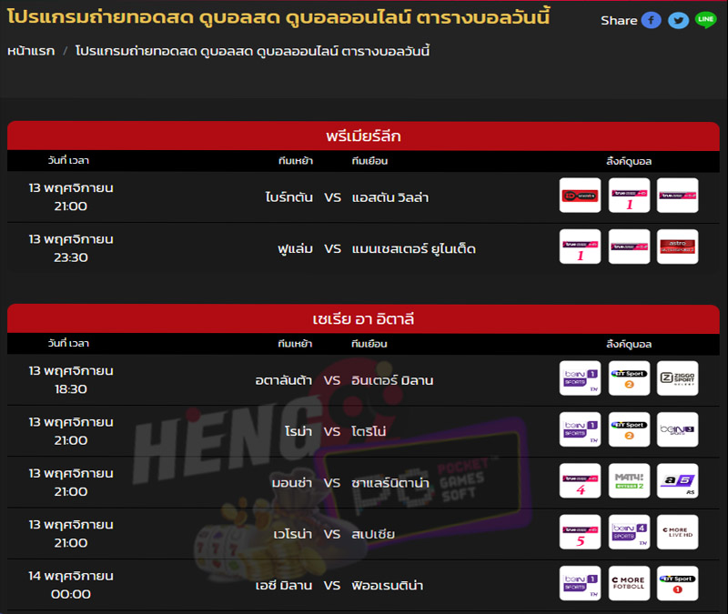 ระบบมีการอัพเดทไม่ว่าจะเป็นผลบอลใหม่ ๆ ประจำวัน หรือ ตารางการแข่งขันและสามารถรับชมการถ่ายทอดสดได้อีกด้วย เพื่อเตรียมความพร้อมให้ผู้ชมได้เข้ามาเตรียมตัวกัน โดยมีจะมีการระบุเวลาว่าอย่างแน่ชัดว่าจะมีการเตะเมื่อไหร่ เพื่อที่คุณจะได้รับรู้ข้อมูลล่วงหน้า และหาเวลาว่างเพื่อมารับชมบอลสดในคู่ต่าง ๆ เหล่านั้น ทำให้คุณสามารถคลิกเข้าไปเพื่อรับชมบอลสดได้ทันทีไม่ต้องเสียเวลาหาด้วยตัวเอง ทั้งนี้เรา Heng99bet ยังเปิดให้บริการในเรื่องของการ ทายผลบอล อีกด้วย และเรายังมี ทีเด็ด วิเคราะห์ผลบอลให้คุณได้รู้ก่อนใคร เพื่อเป็นแนวทางในการตัดสินใจก่อนที่คุณจะลงเดิมพันนั่นเอง